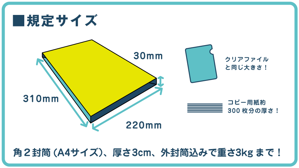 ・重さ :3kg ※外装封筒込みの重さになります。