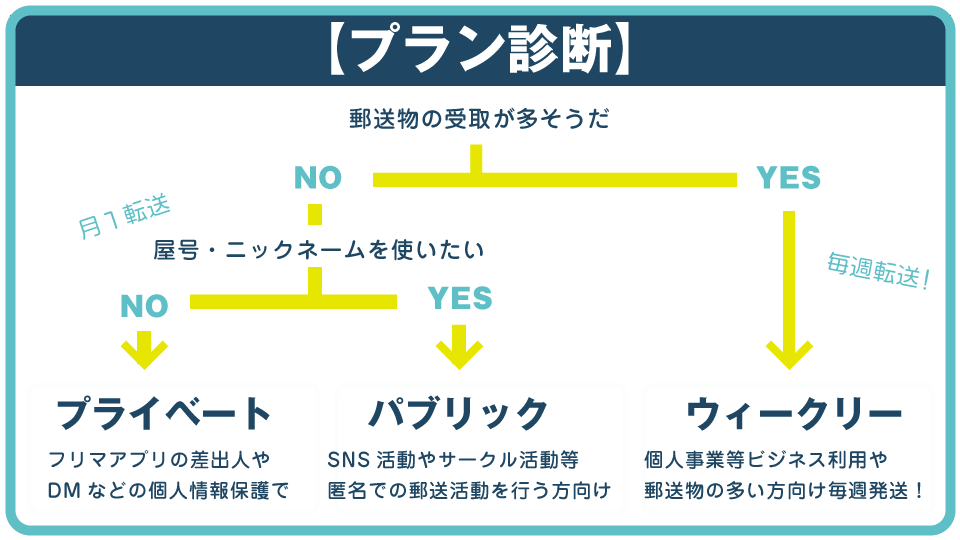 屋号・ニックネーム利用の有無と、転送頻度に合わせてプランをお選び頂けます!
